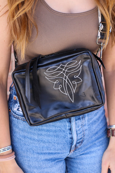Our Stitched Mini Mules are the perfect everyday bag! They are Leather on the outside, with our new DOUBLE zippers! Also lined with oilcloth for easy cleaning! AND they have three cards slots made out of leather on the inside! (Bright White Stitching)